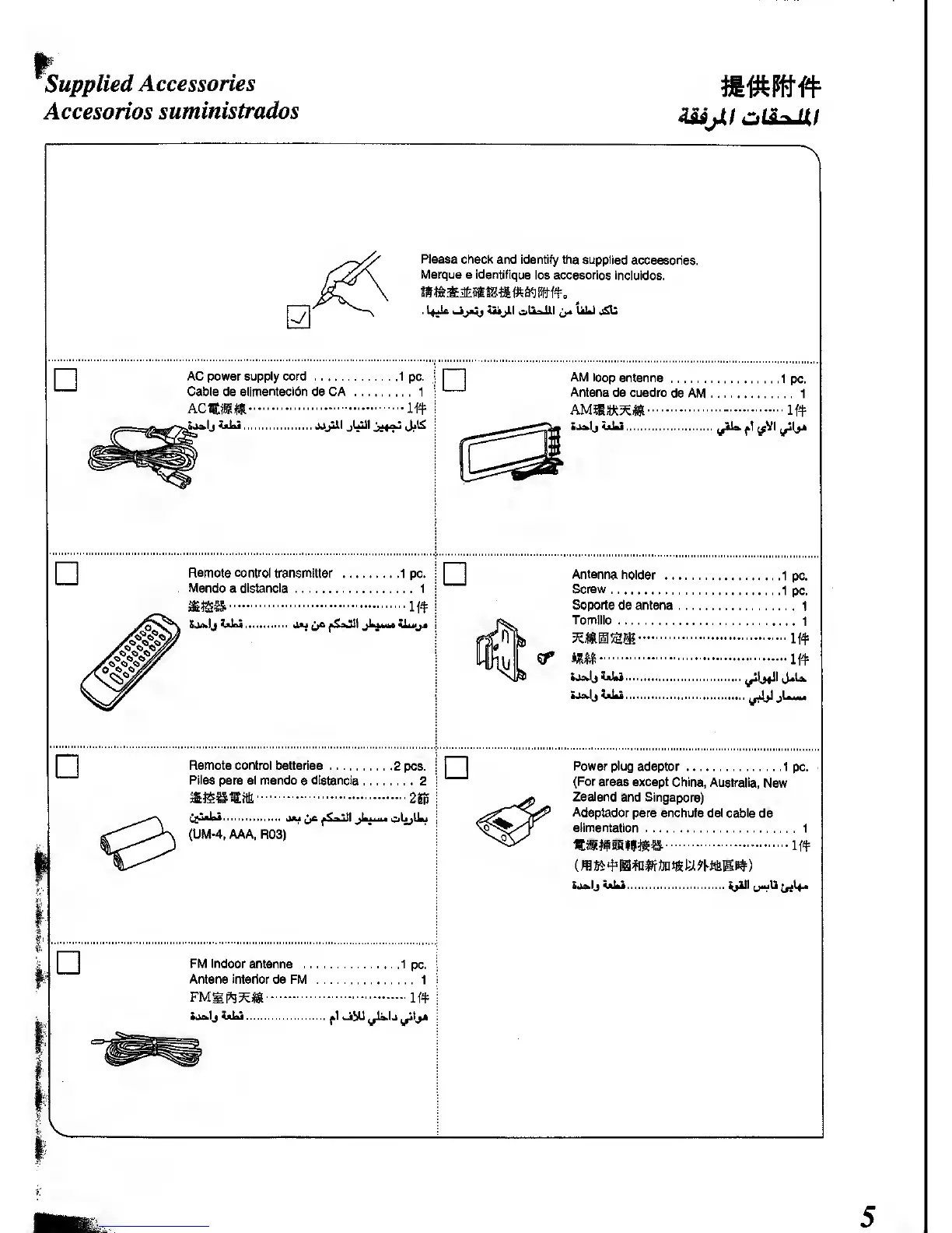 the supplied accessories.
