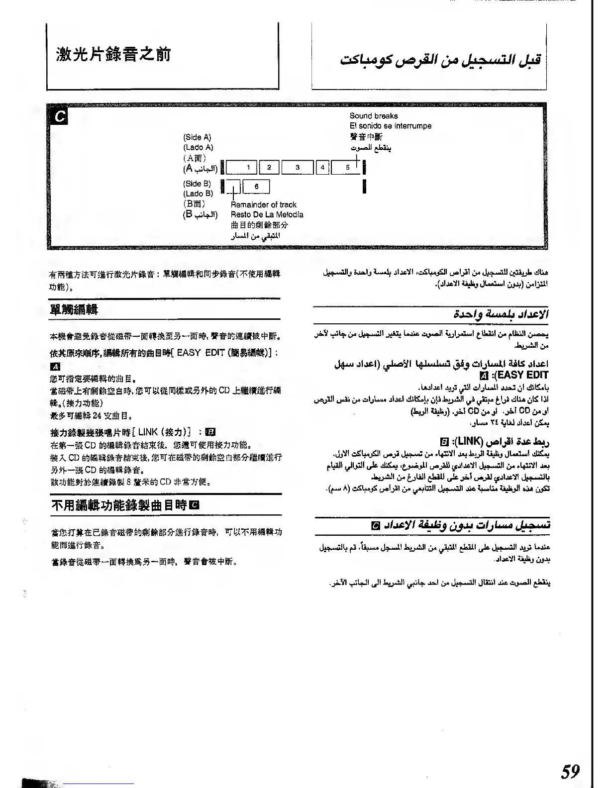Panasonic SC-CH72 - Recording from Compact Discs; Editing Compact Disc Tracks; Recording Without Editing