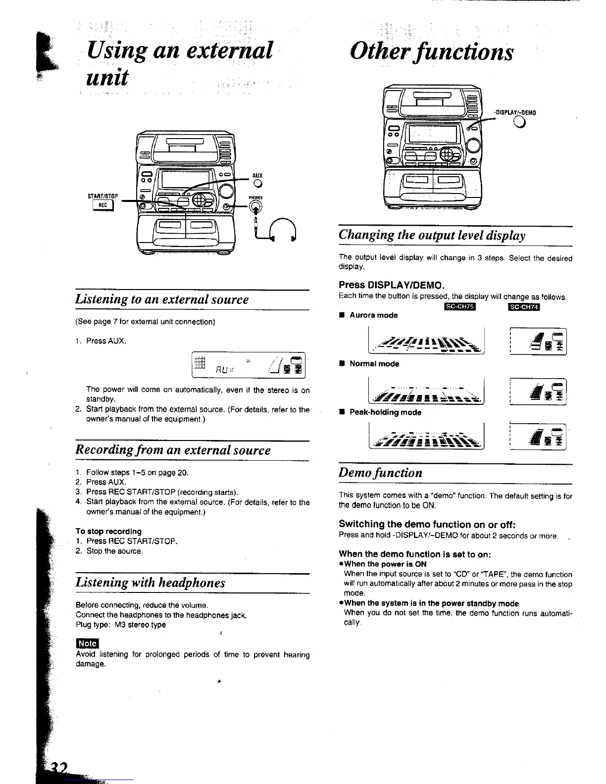 Panasonic SC-CH74 - Using an External Unit; Other Functions; Listening to en External Source; Changing the Output Level Display