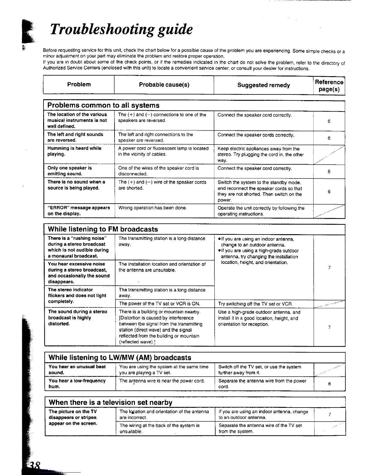 Panasonic SC-CH74 - Troubleshooting Guide; Common System Problems; FM Broadcast Issues; AM Broadcast and TV Interference Issues