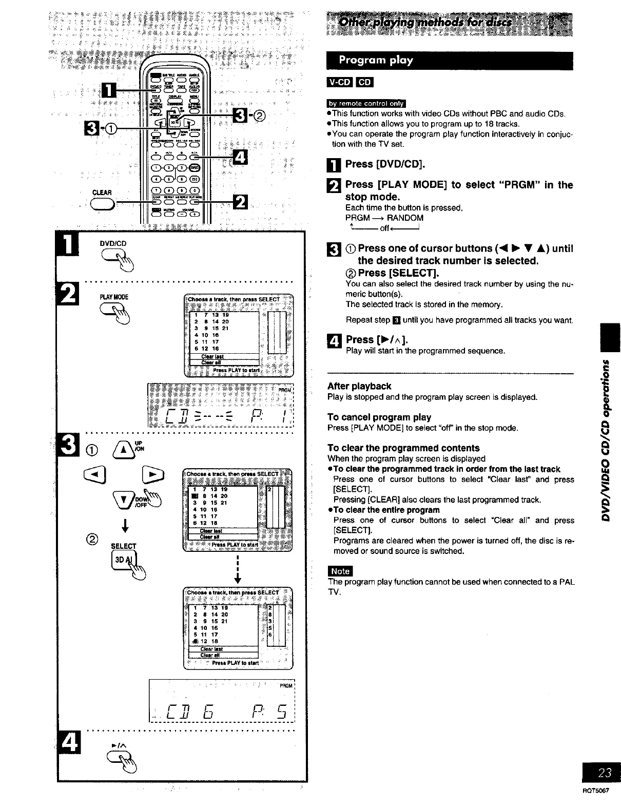 Pressing [CLEAR] also clears the last programmed track.