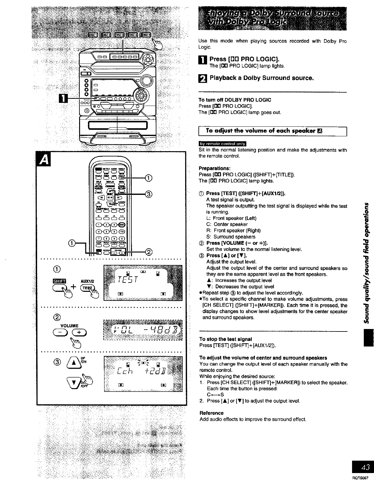 Press [Dn PRO LOGIC] ([SHIFt+[TITLE]).