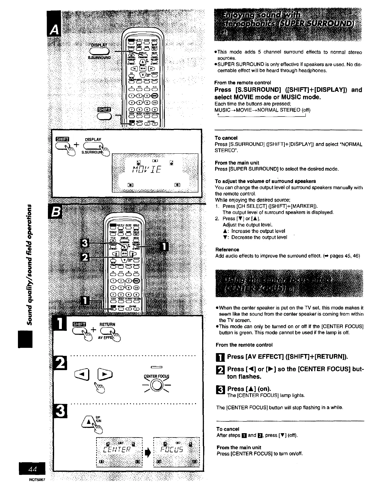Add audio effects to improve the surround effect. (,,J pages 45, 46)