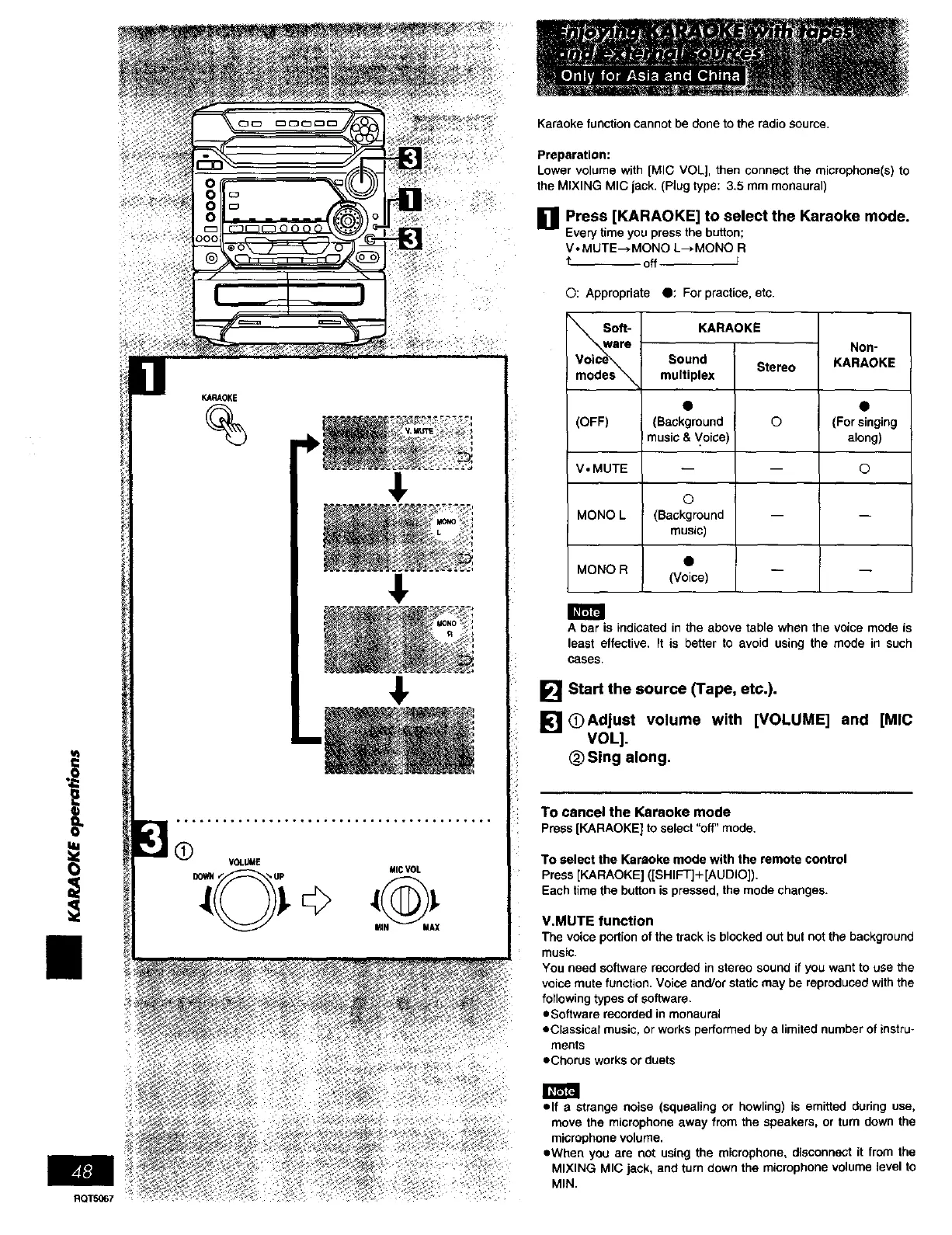 < Karaoke function cannot be done to the radio source.