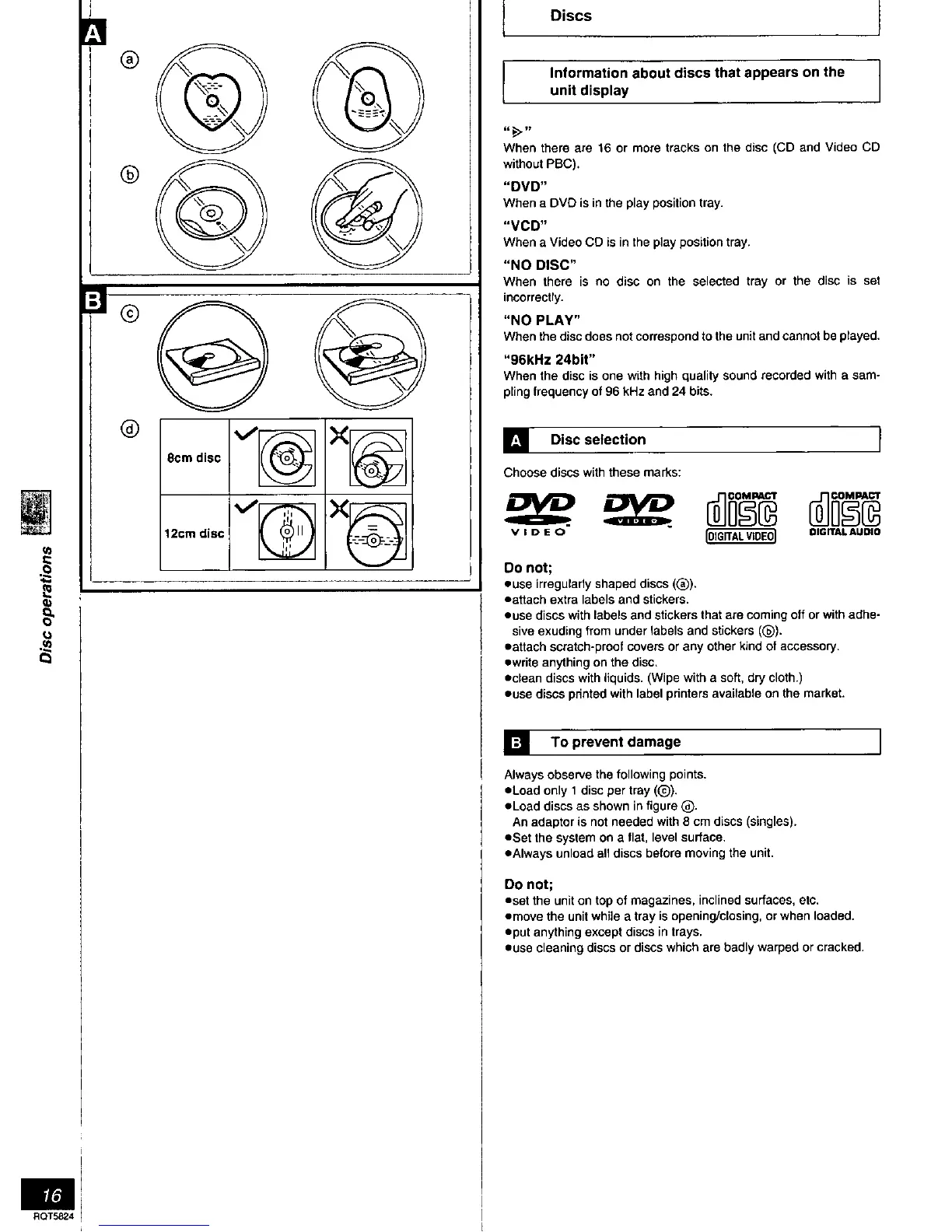 Panasonic SC-DK10 - Disc Selection; To Prevent Damage; Information about Discs that Appears on the Unit; Display