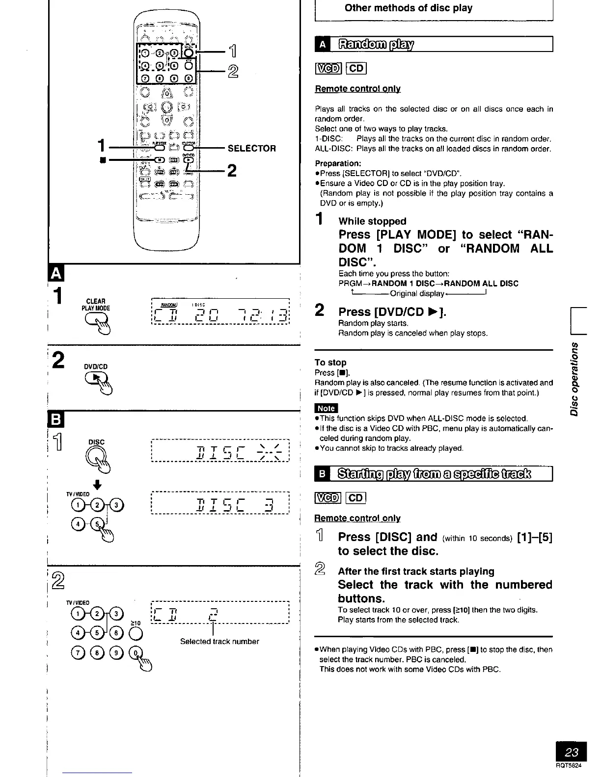 Panasonic SC-DK10 - Random Play; Starting Play from a Specific Track