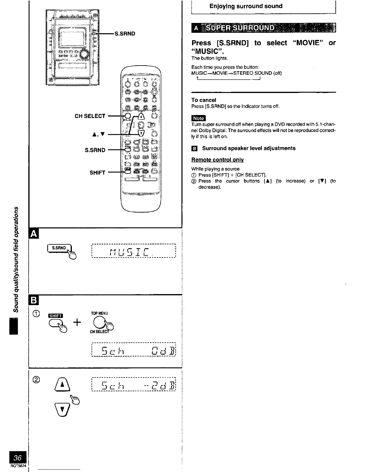 Panasonic SC-DK10 - Super Surround; Surround Speaker Level Adjustments