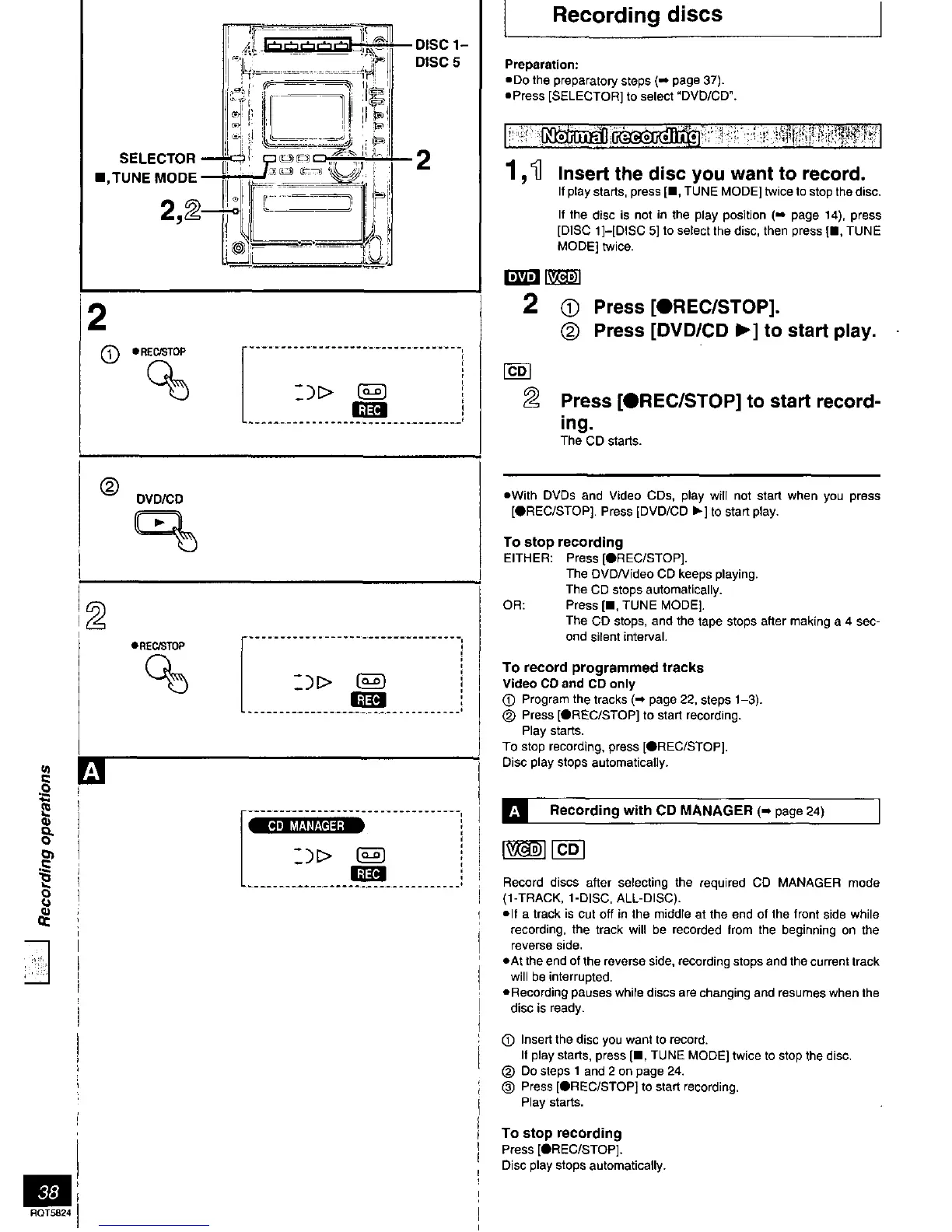 Panasonic SC-DK10 - Recording Discs; Normal Recording; Recording with CD Manager