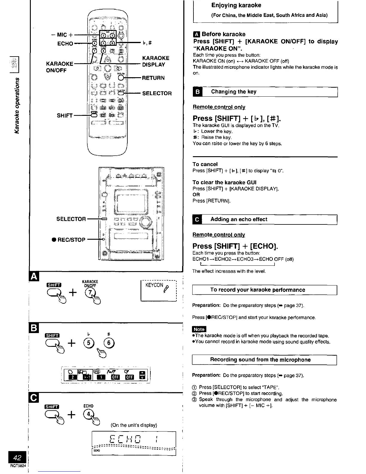 Panasonic SC-DK10 - Changing the Key; Adding an Echo Effect; To Record Your Karaoke Performance; Recording Sound from the Microphone