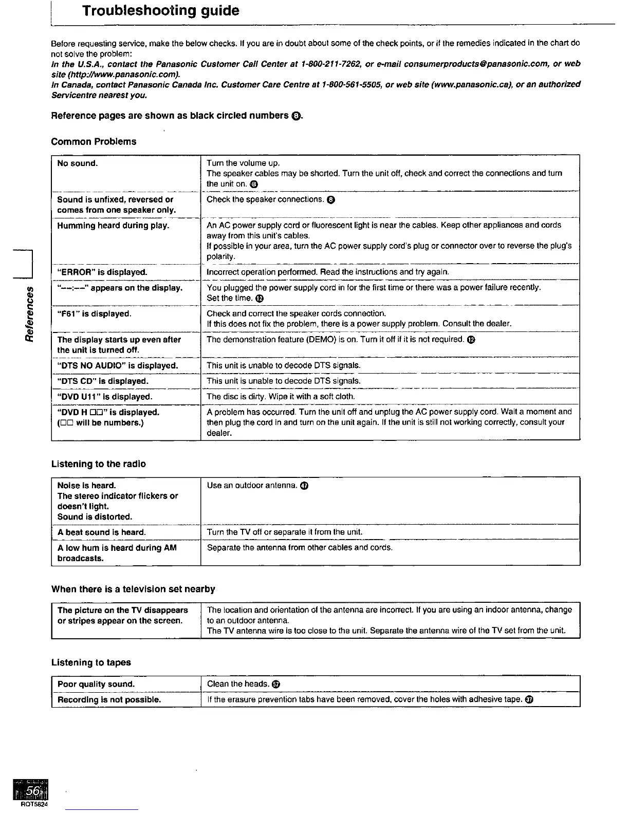Panasonic SC-DK10 - Support and Specifications; Troubleshooting Guide