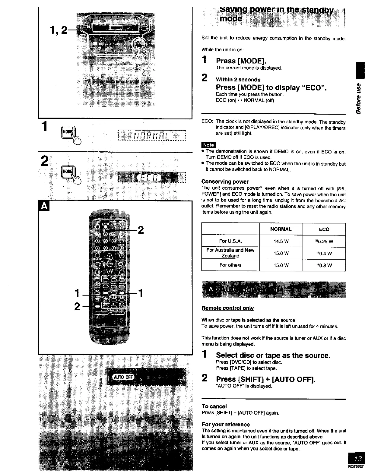 POWER] and ECO mode is turned on. To save power when the unit