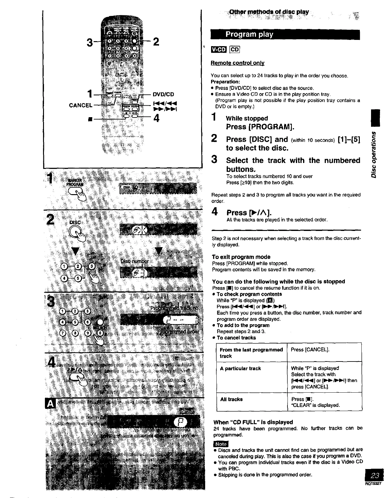 • You can program individual tracks even if the disc is a Video CD