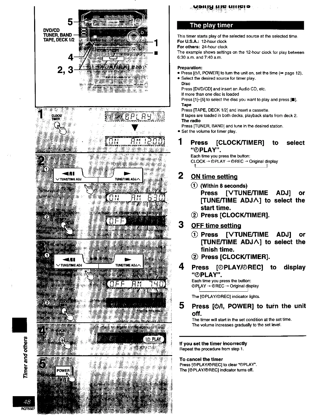 • Press [(_/I, POWER] to turn the unit on, set the time (-, page 12),