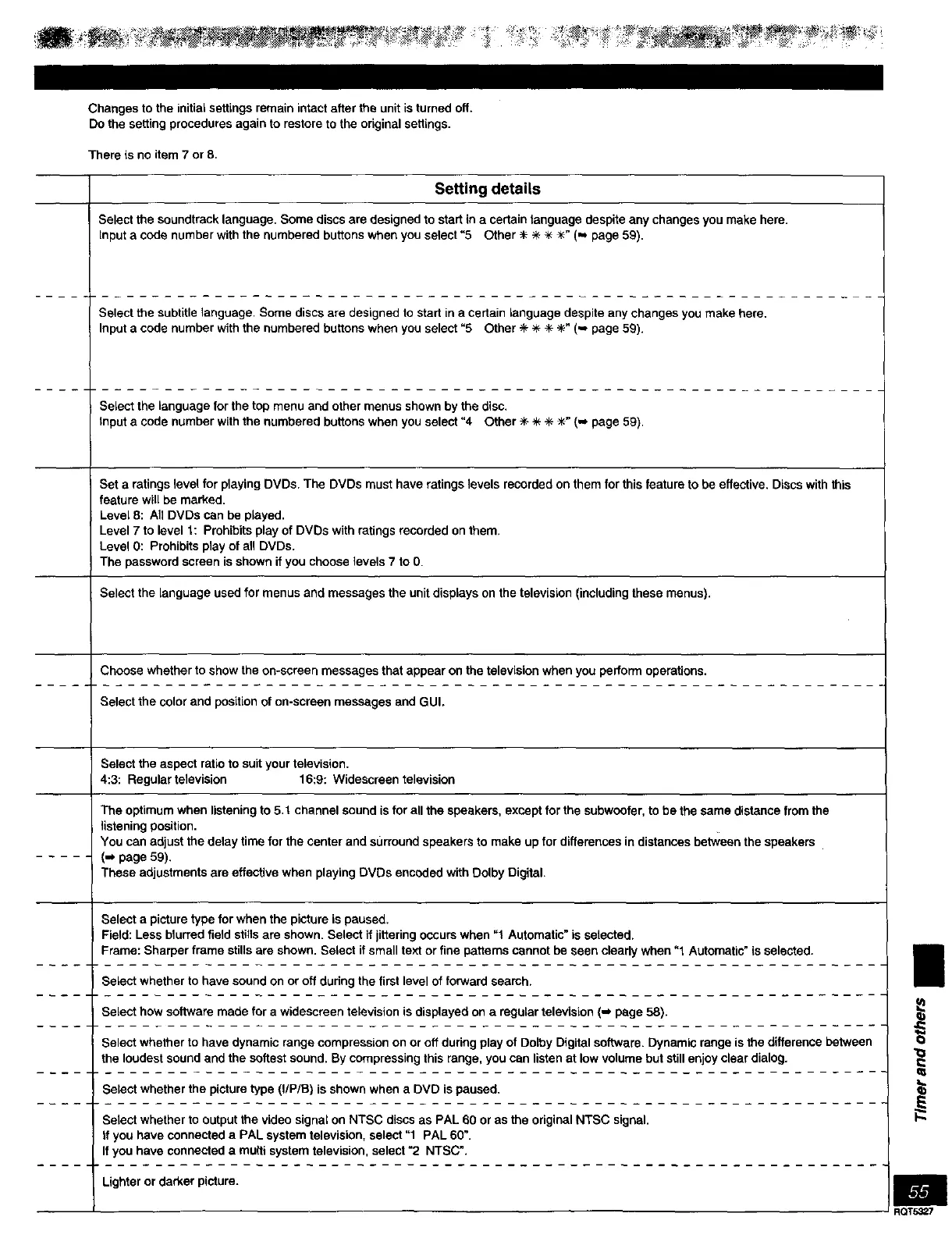 Level 7 to level 1: Prohibits play of DVDs with ratings recorded on them.