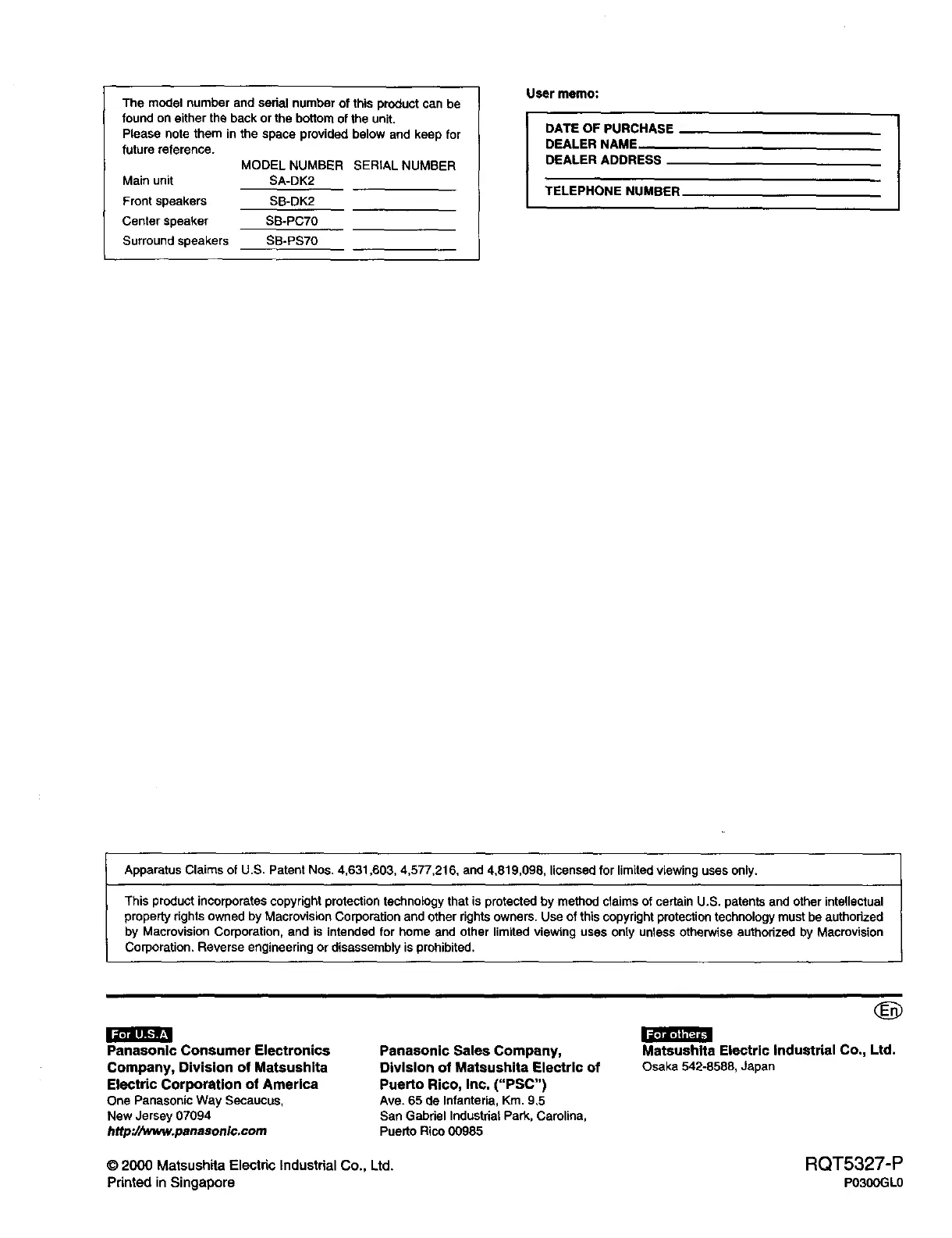 © 2000 Matsushita Electric Industrial Co., Ltd. RQT5327-P