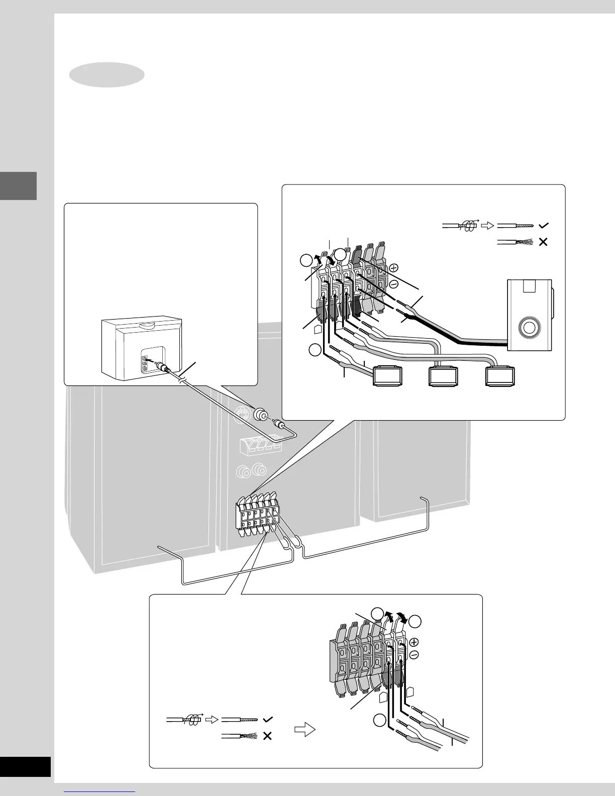 Incorrect connection can damage the speakers.