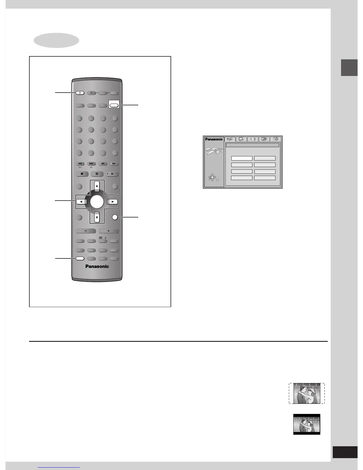Select 4:3 (regular) or 16:9 (widescreen) to suit your television.