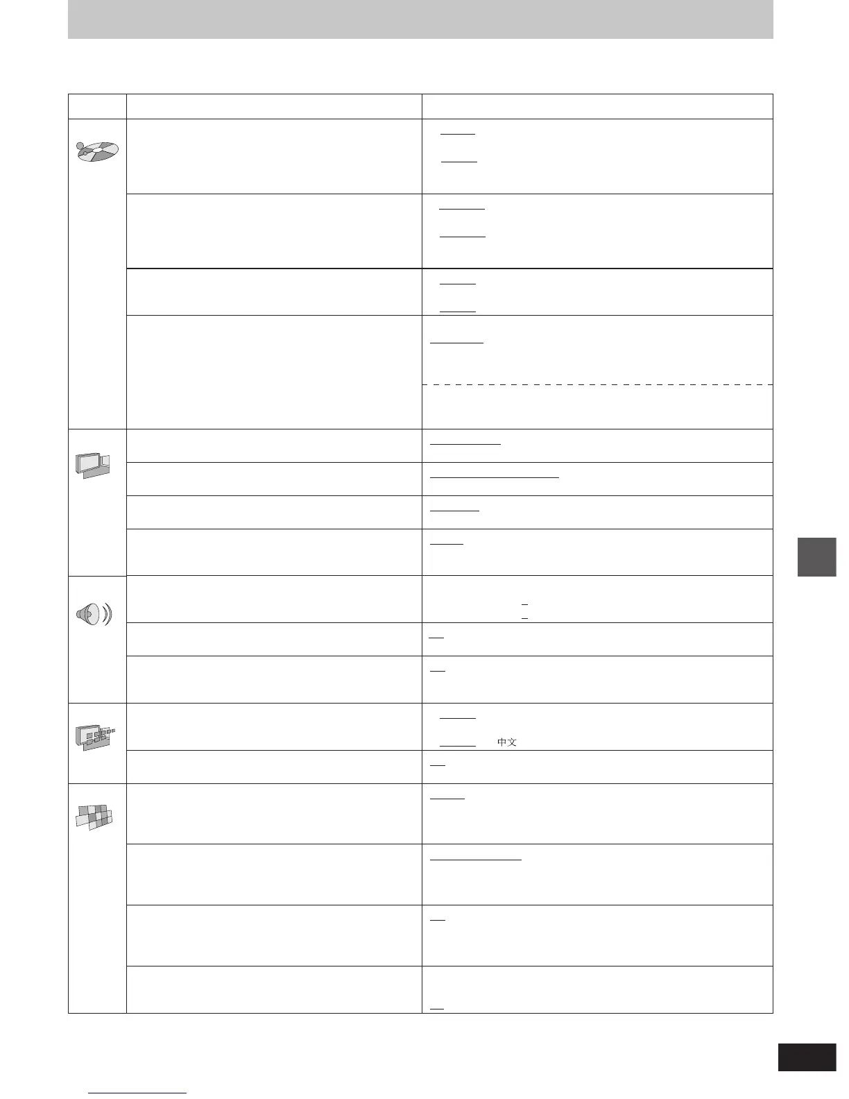 Yes (Menu language, Audio language, Subtitle language, TV type, TV