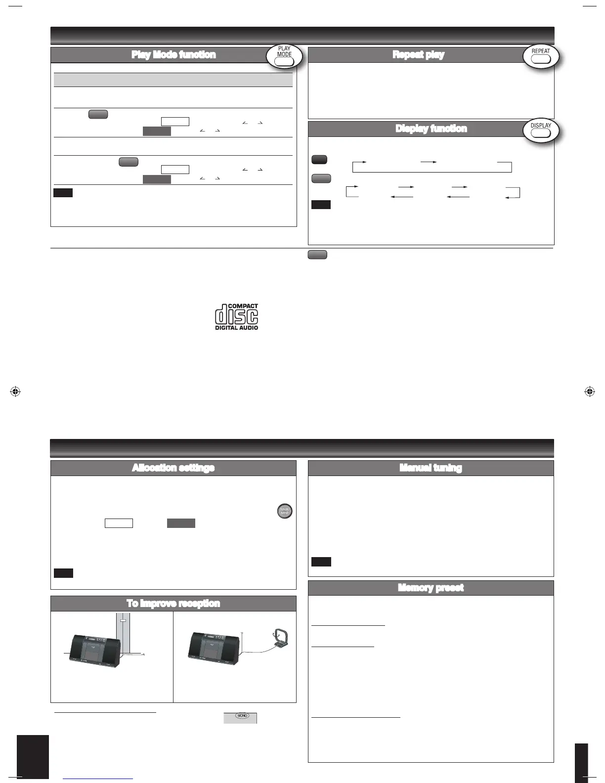 Press and hold [PLAY MODE] again until “MONO” disappears.