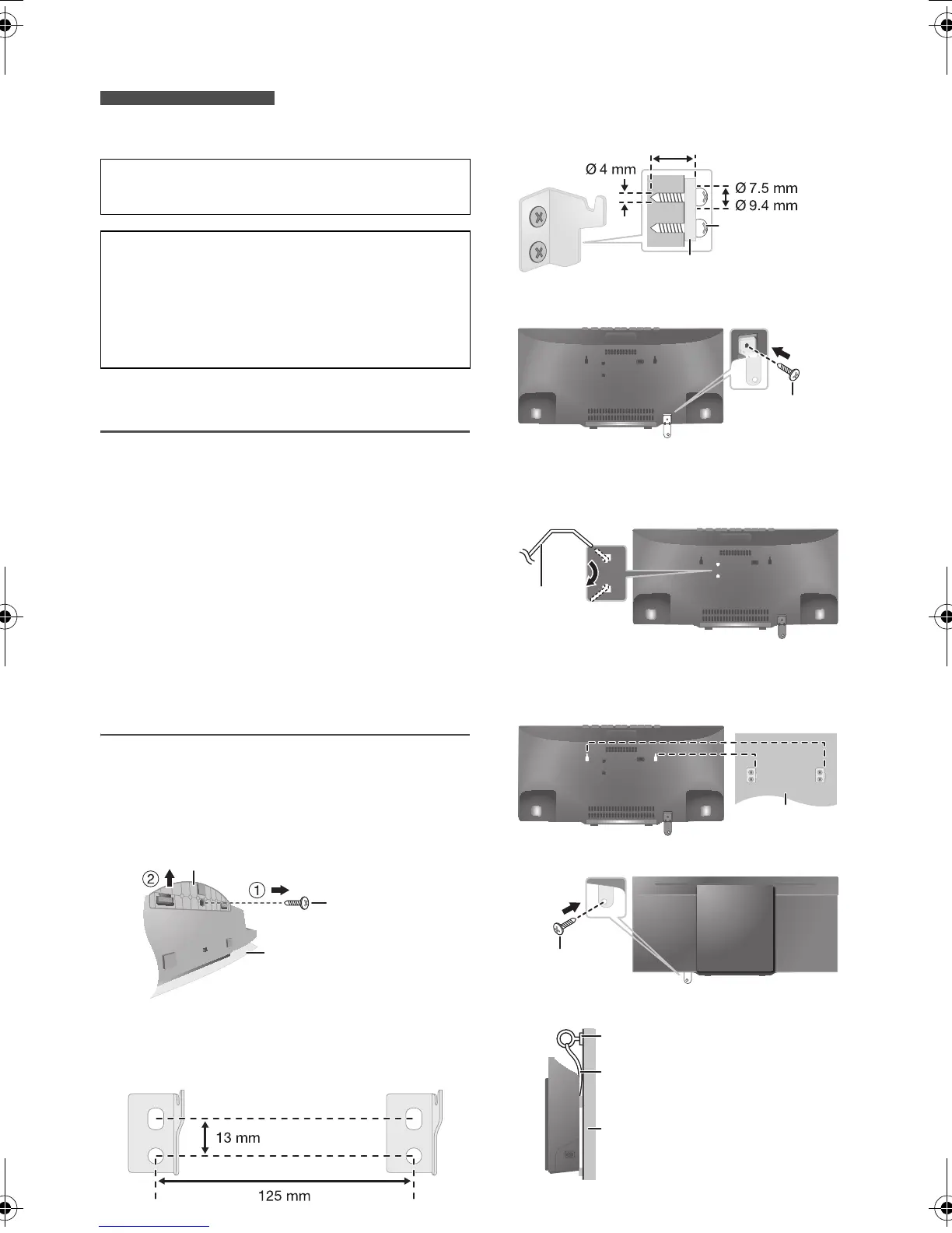 • Make sure the screws, the cord and the wall can