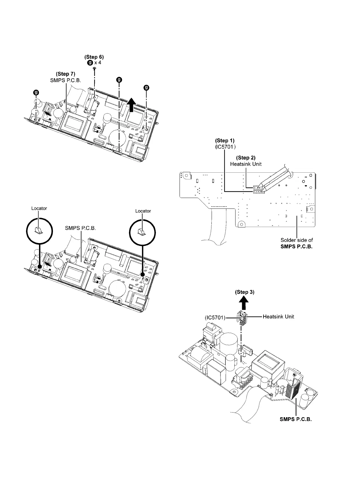 Step 7 : Remove SMPS P.C.B. as arrow shown.