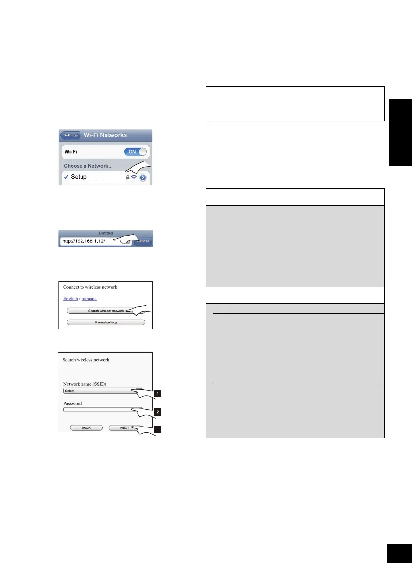 {. “SETTING” is indicated on the display. (Wi-Fi status