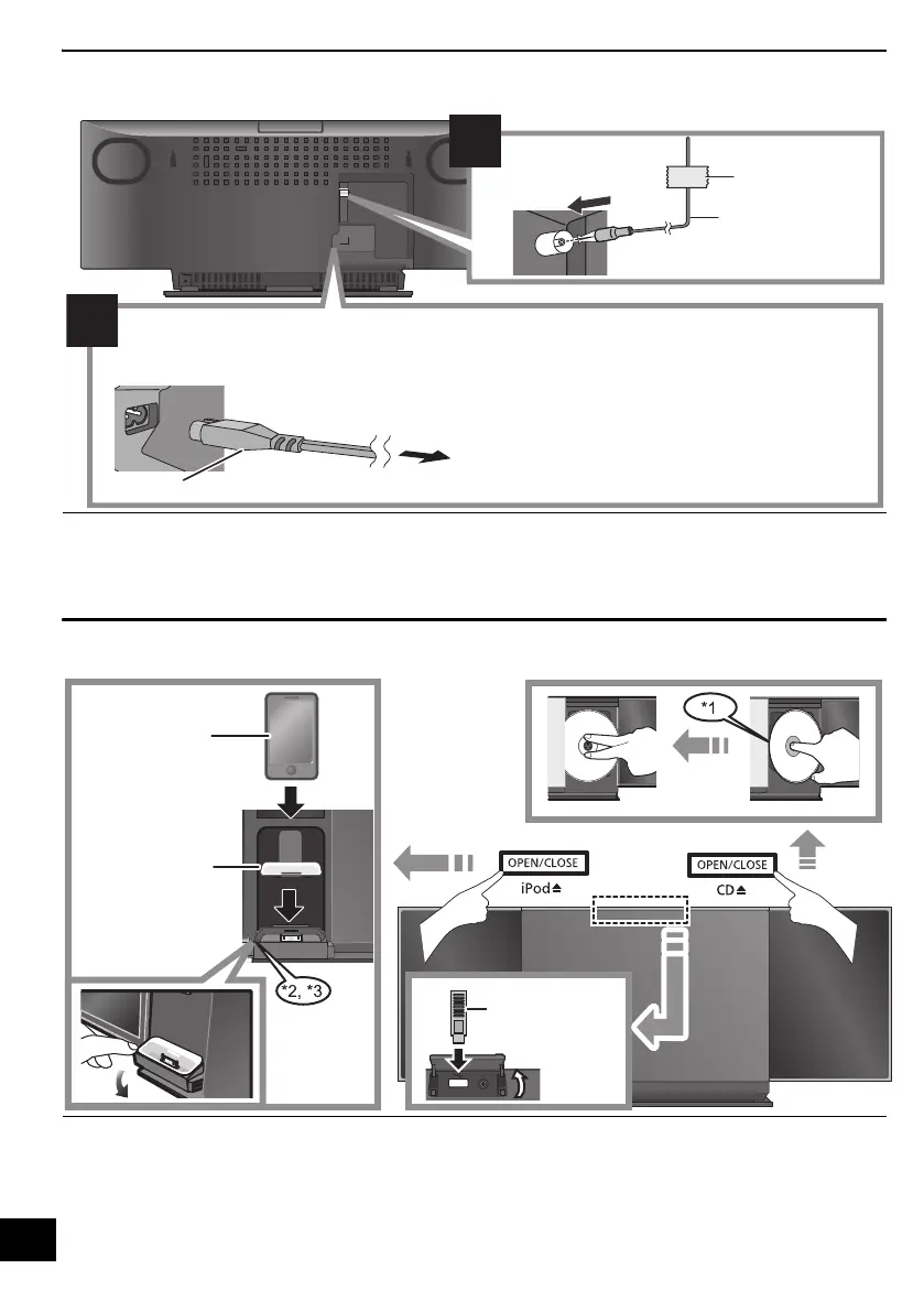 *3: Při vkládání či vyjímání zařízení iPod/iPhone podržte roh