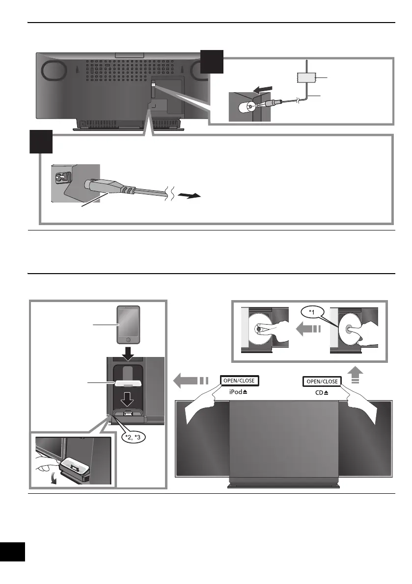 *3: When inserting or removing the iPod/iPhone, tilt the dock