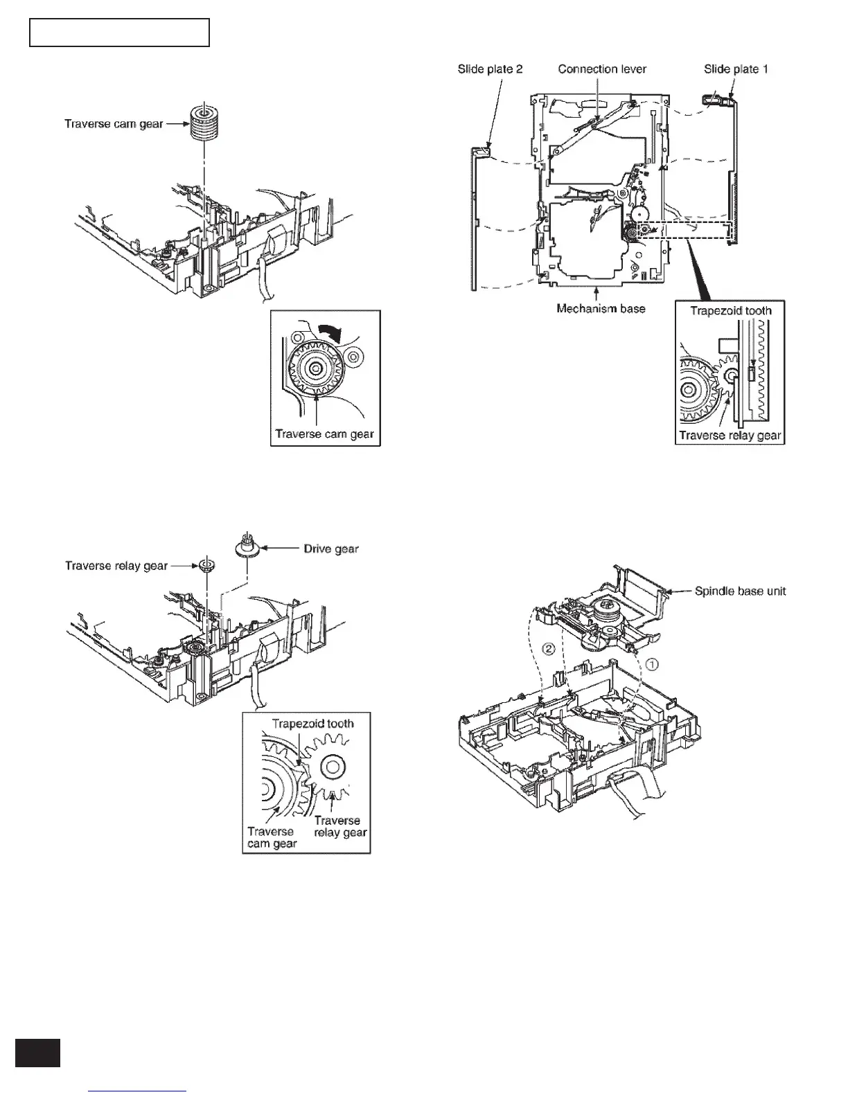 *When installing the traverse relay gear, align the trapezoid tooth
