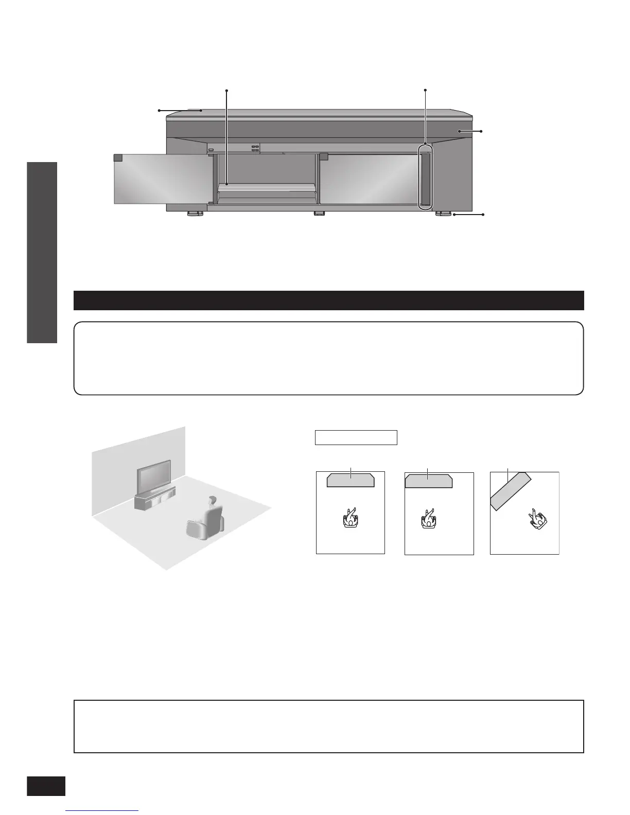 Do not place in front of curtains as they may obstruct the system’s exhaust hole.