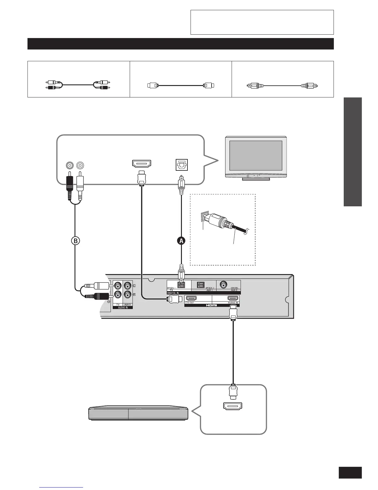 HDMI cable (not included) Optical fibre cable (not included)