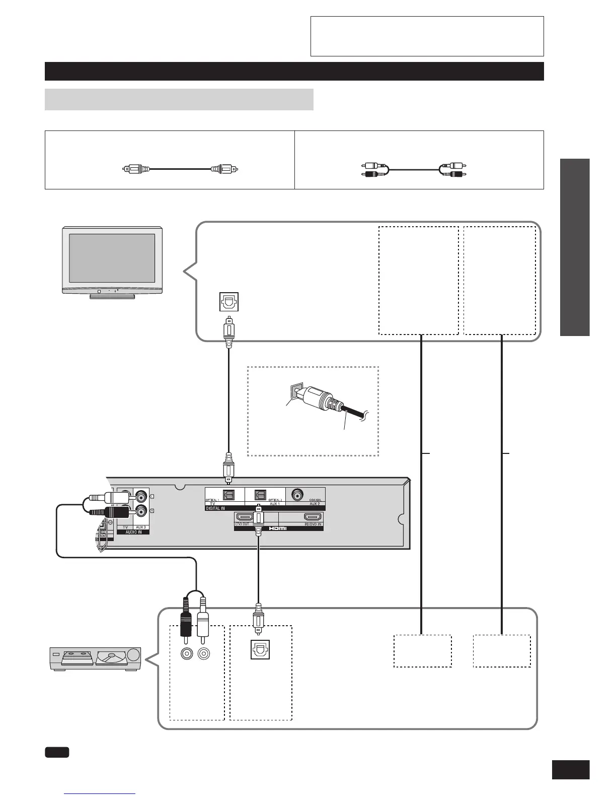 Optical fibre cable (not included) Stereo phono cable (not included)
