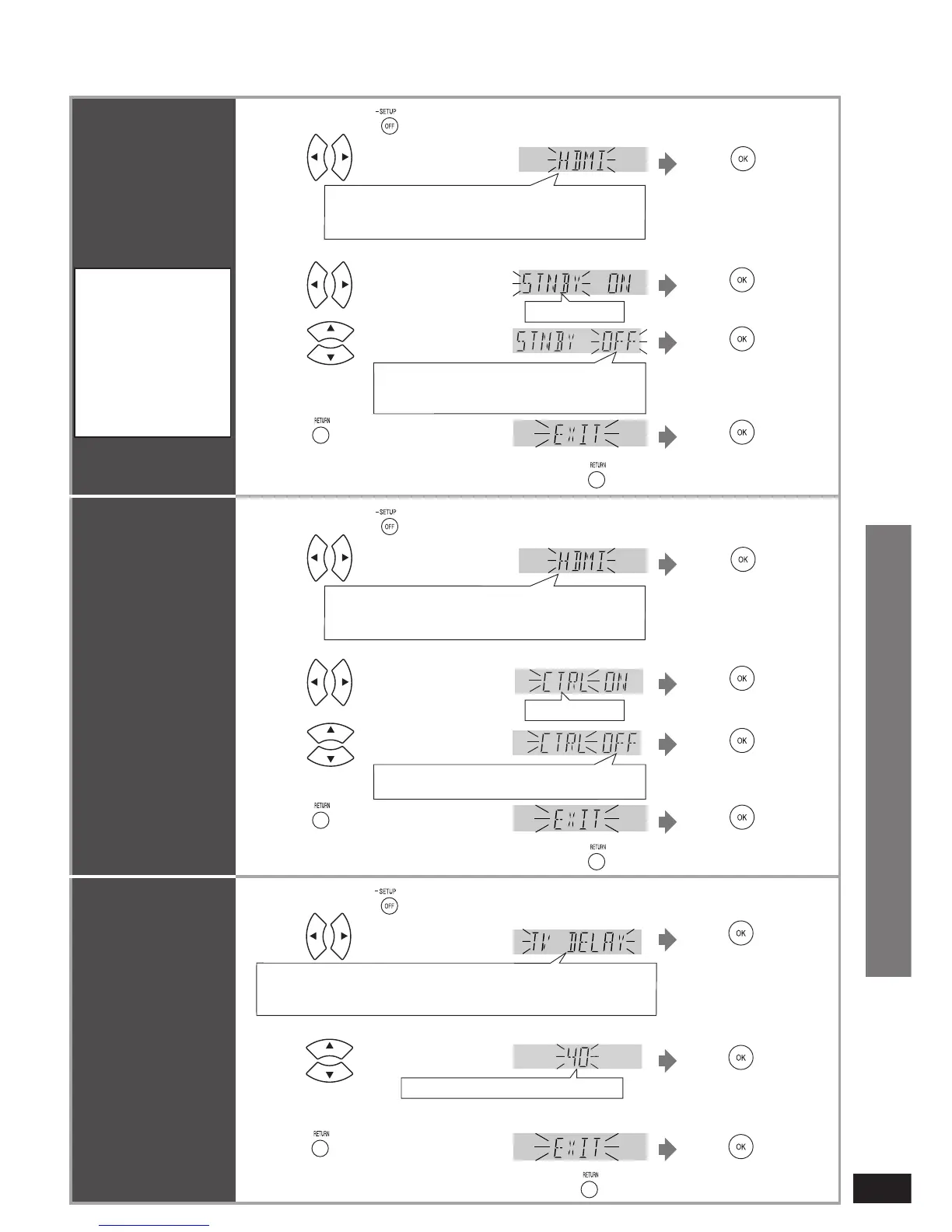 TREBLE, BALANCE, HDMI, TV DELAY,