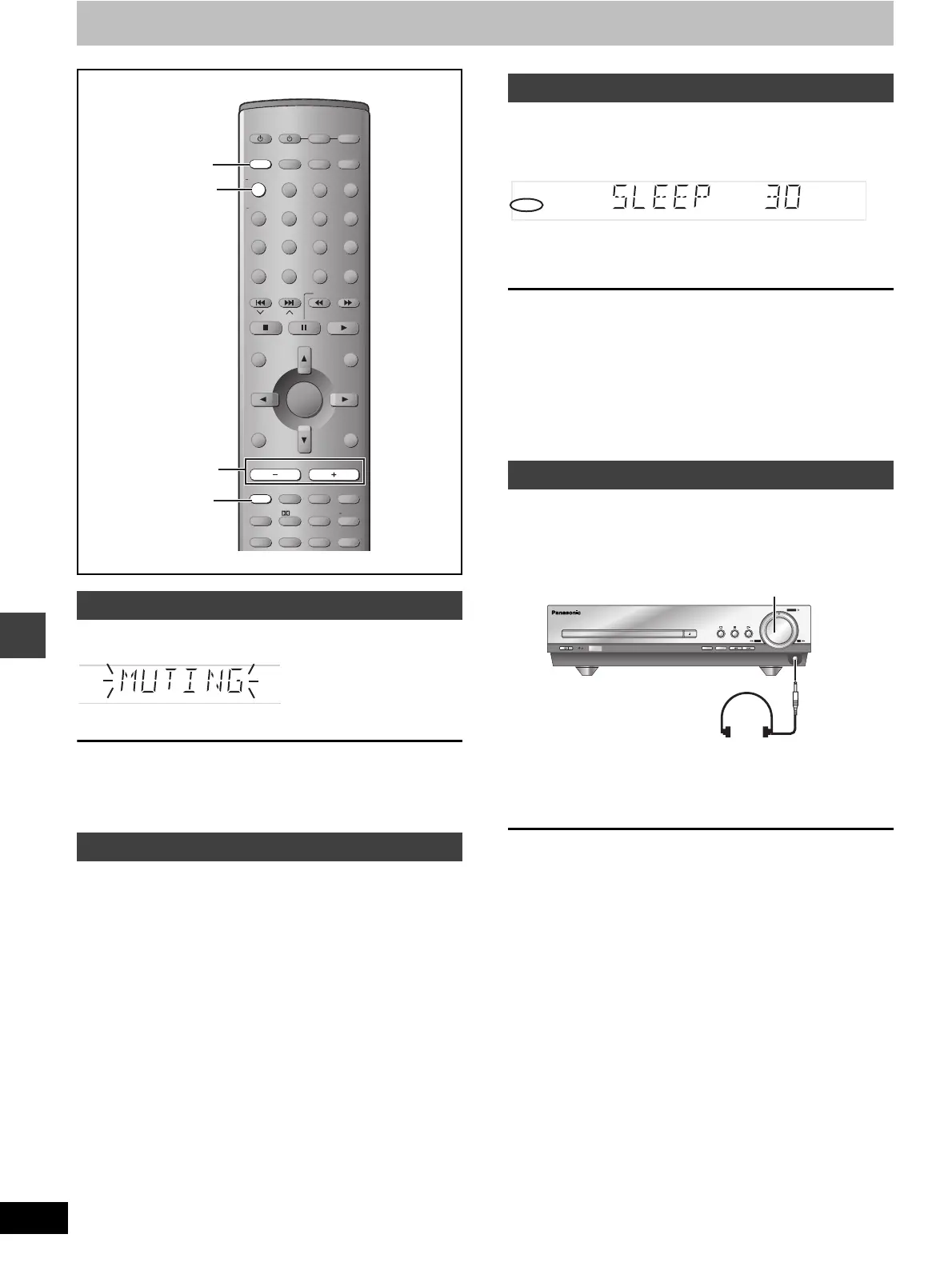 Press [MUTING] again or reduce the volume to minimum (–– dB),