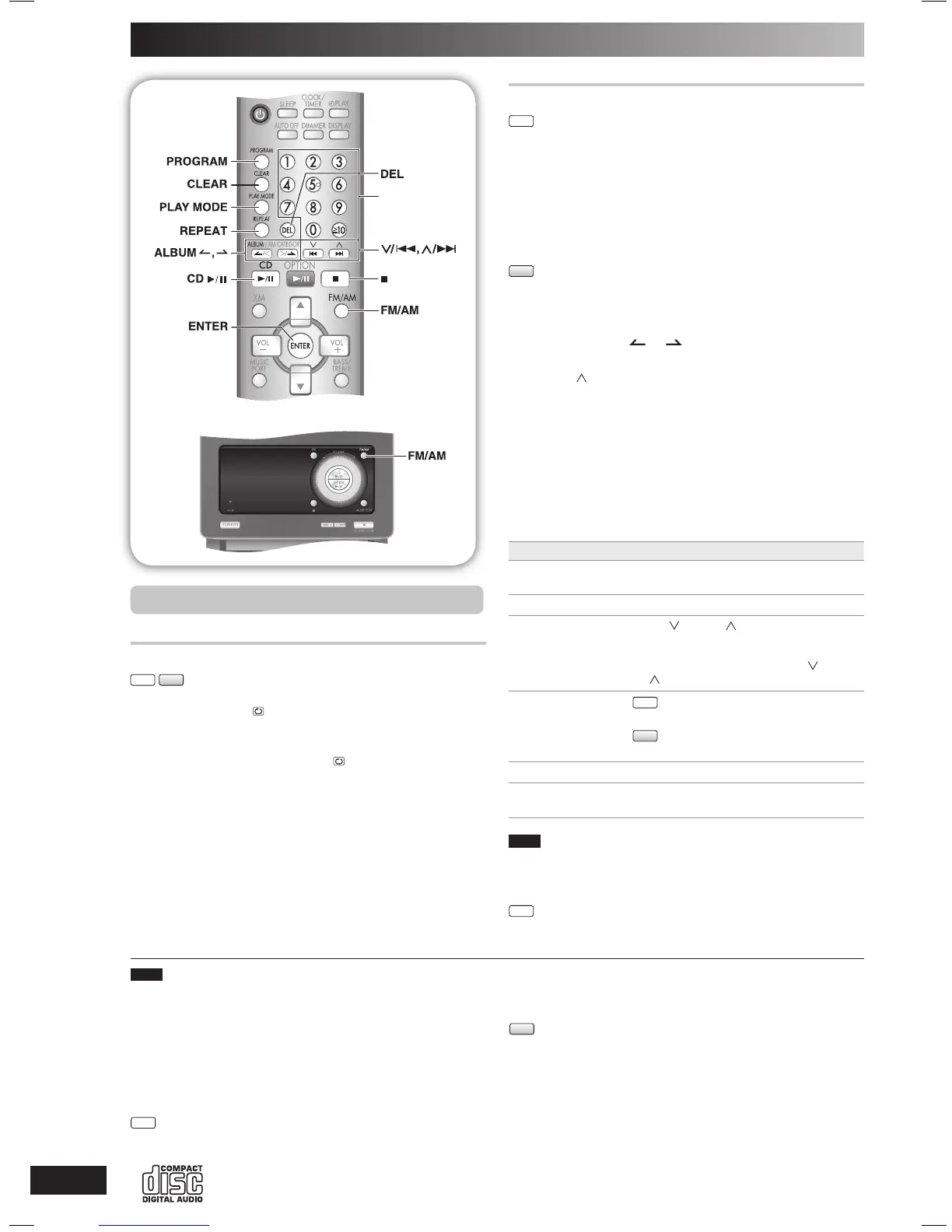 • The program memory is cleared when you open the disc tray.