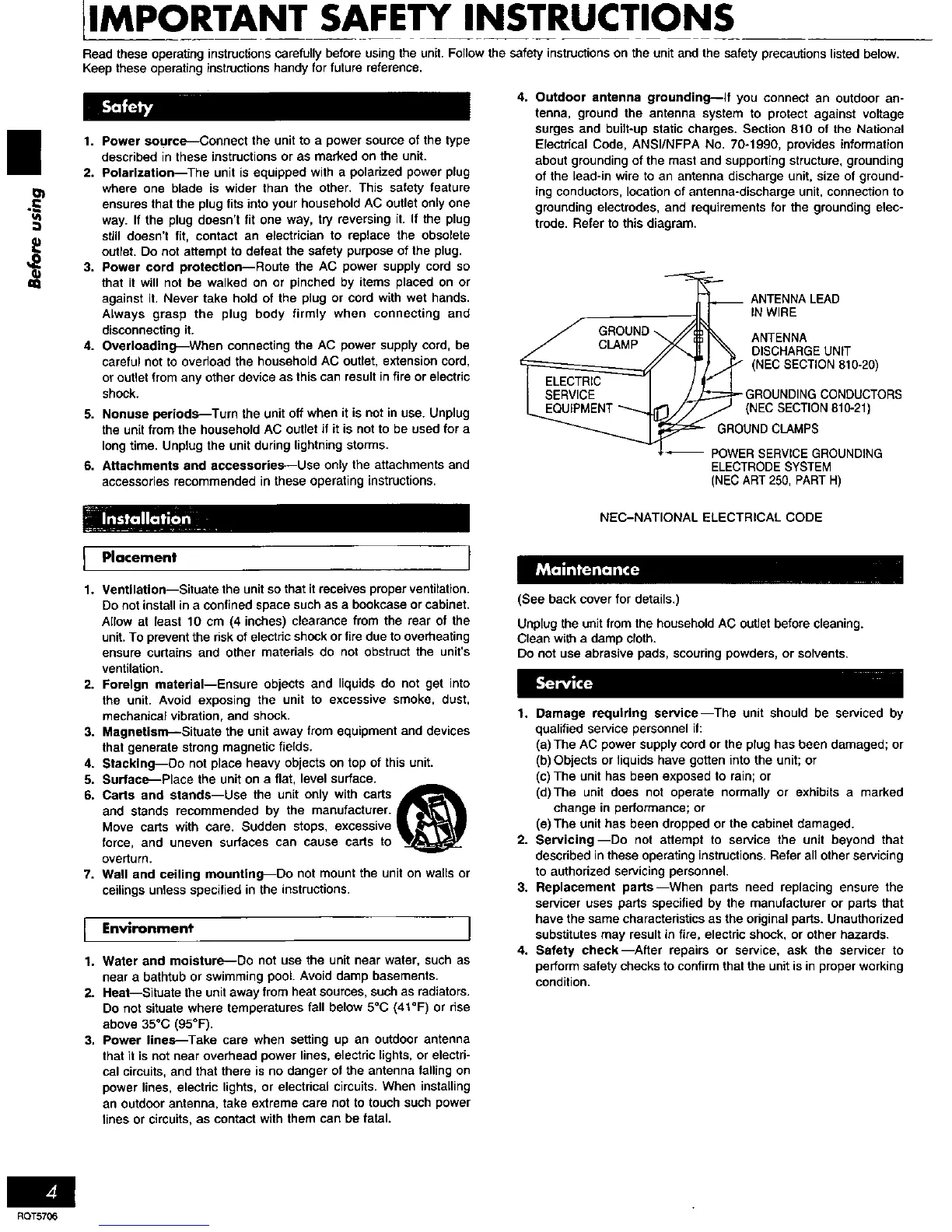 Panasonic SC-PM12 - Important Safety Instructions; Safety and Installation Precautions