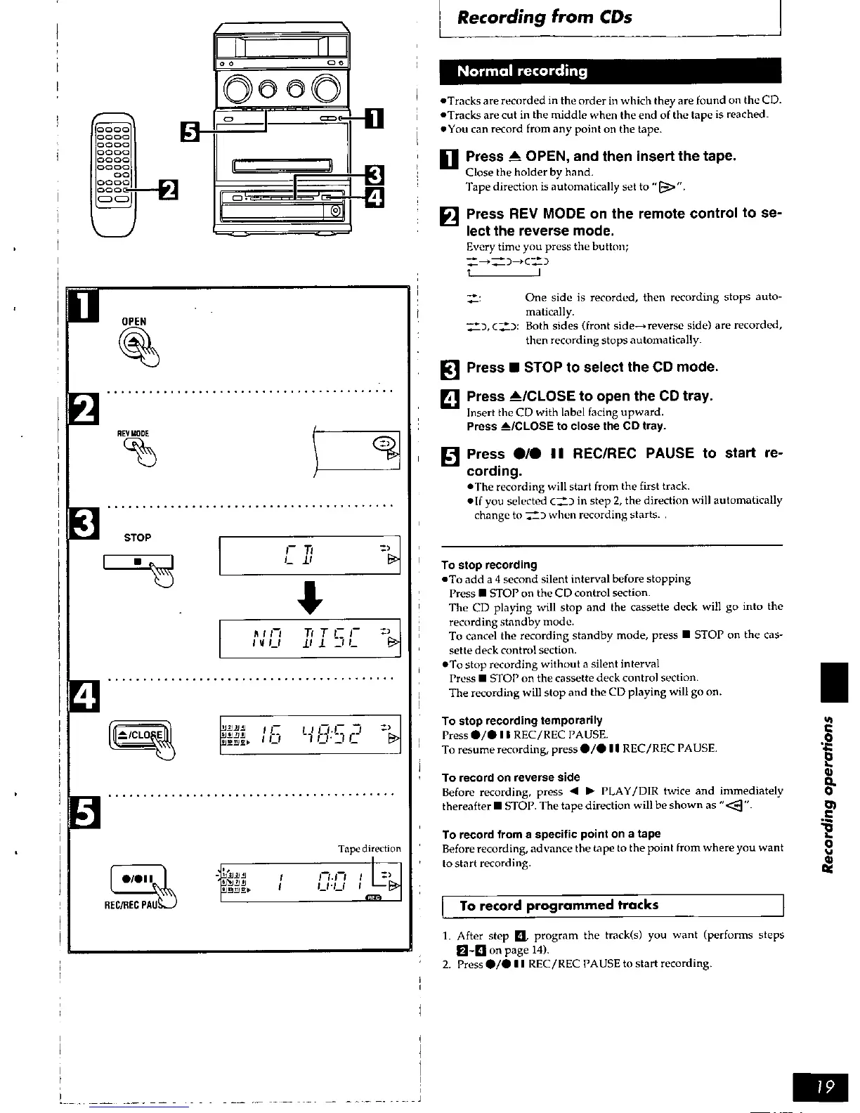 Panasonic SC-PM15 - Recording from CDs; Normal Recording from CD; Selecting Reverse Mode; Selecting CD Mode