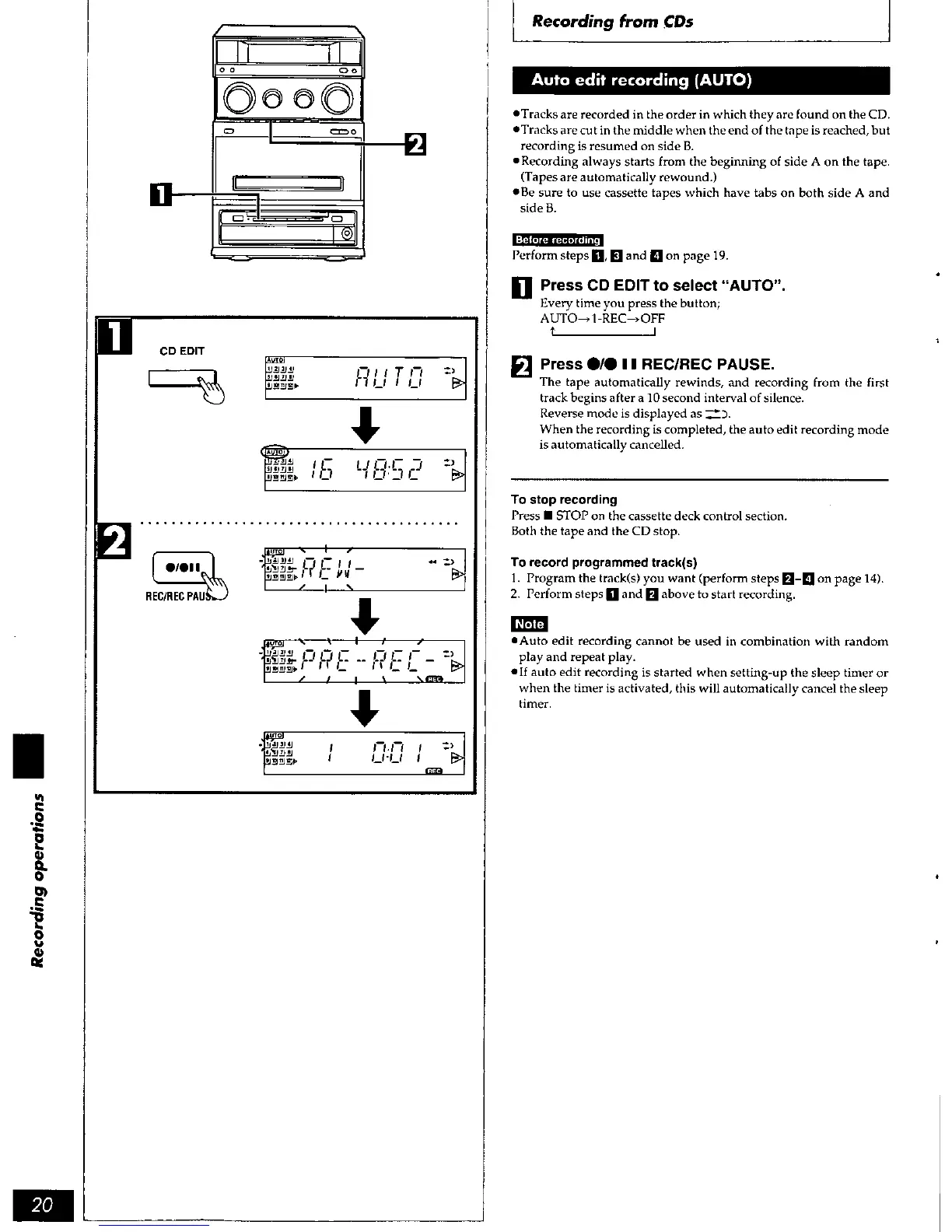 Panasonic SC-PM15 - Auto Edit Recording (AUTO); Before Auto Edit Recording; Selecting AUTO Mode; Starting Auto Edit Recording
