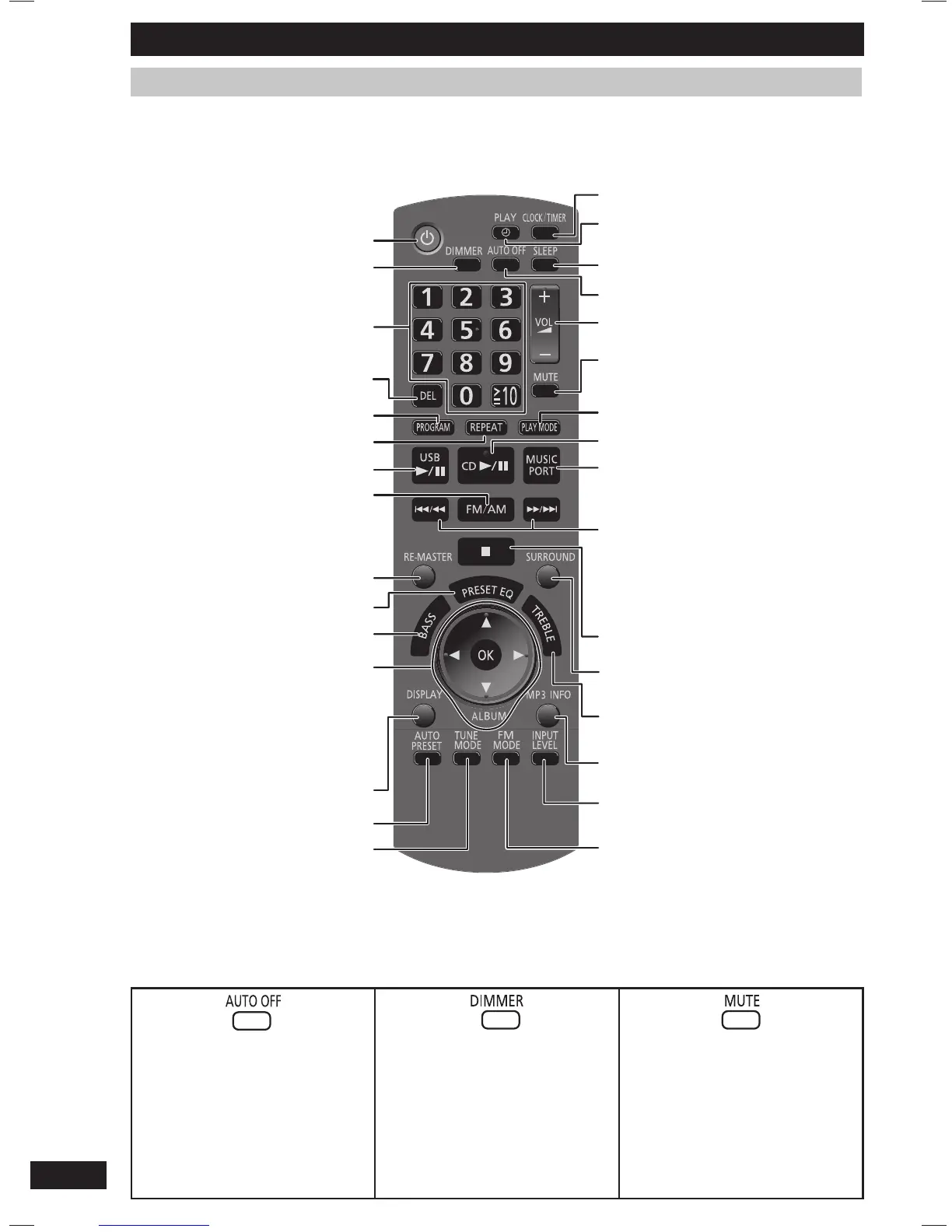 Buttons labelled such as 1 function in exactly the same way as the controls on the main unit. (