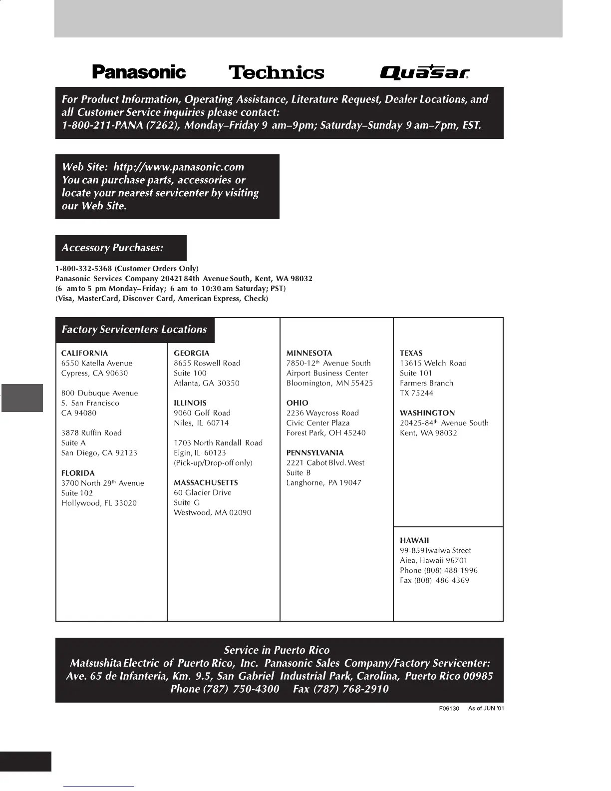 Panasonic SC-PM25 - Service and Warranty Information