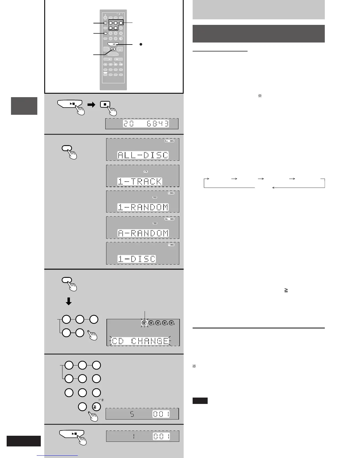 The CD starts if 1-DISC, ALL-DISC or 1-RANDOM was