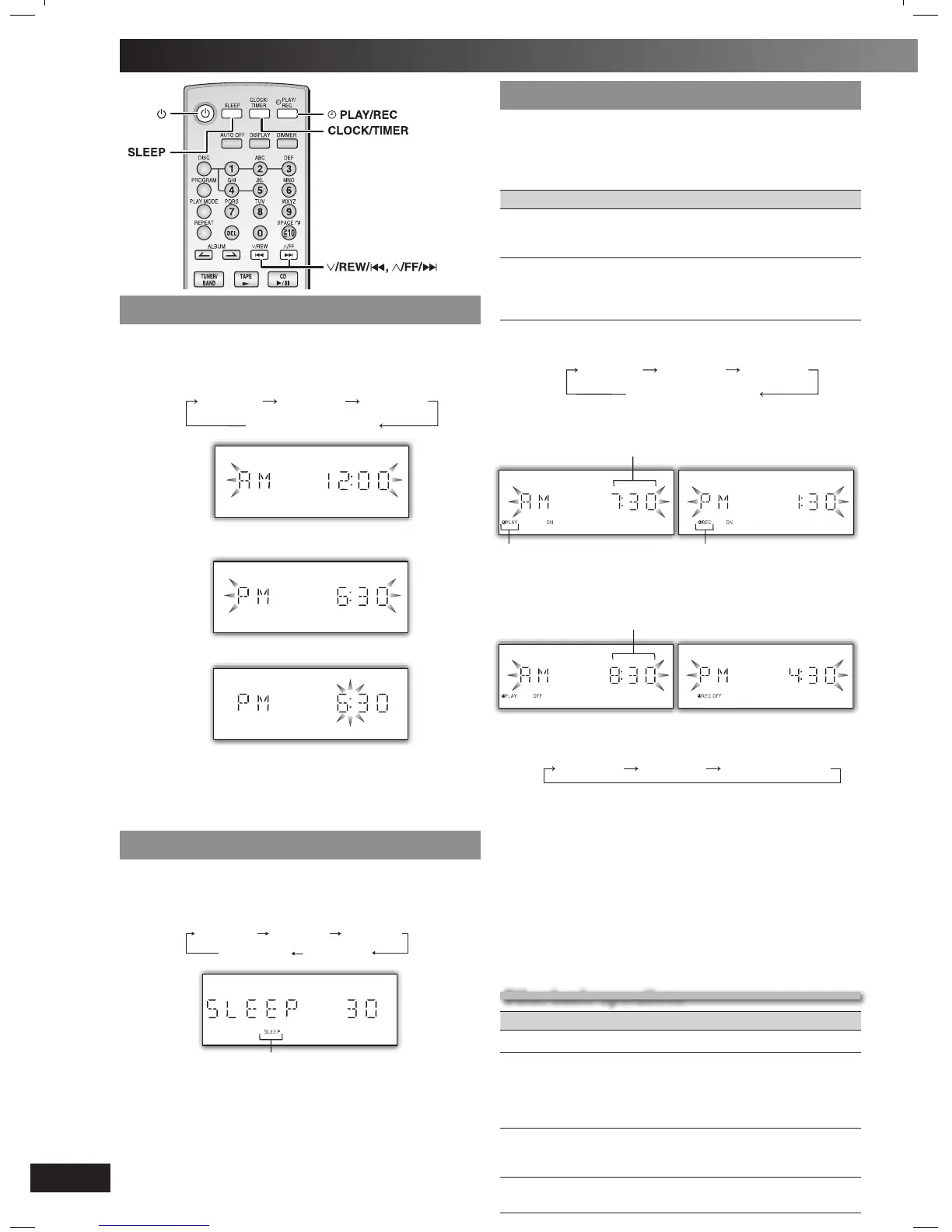 • The play and sleep timer or the record and sleep timer can be used
