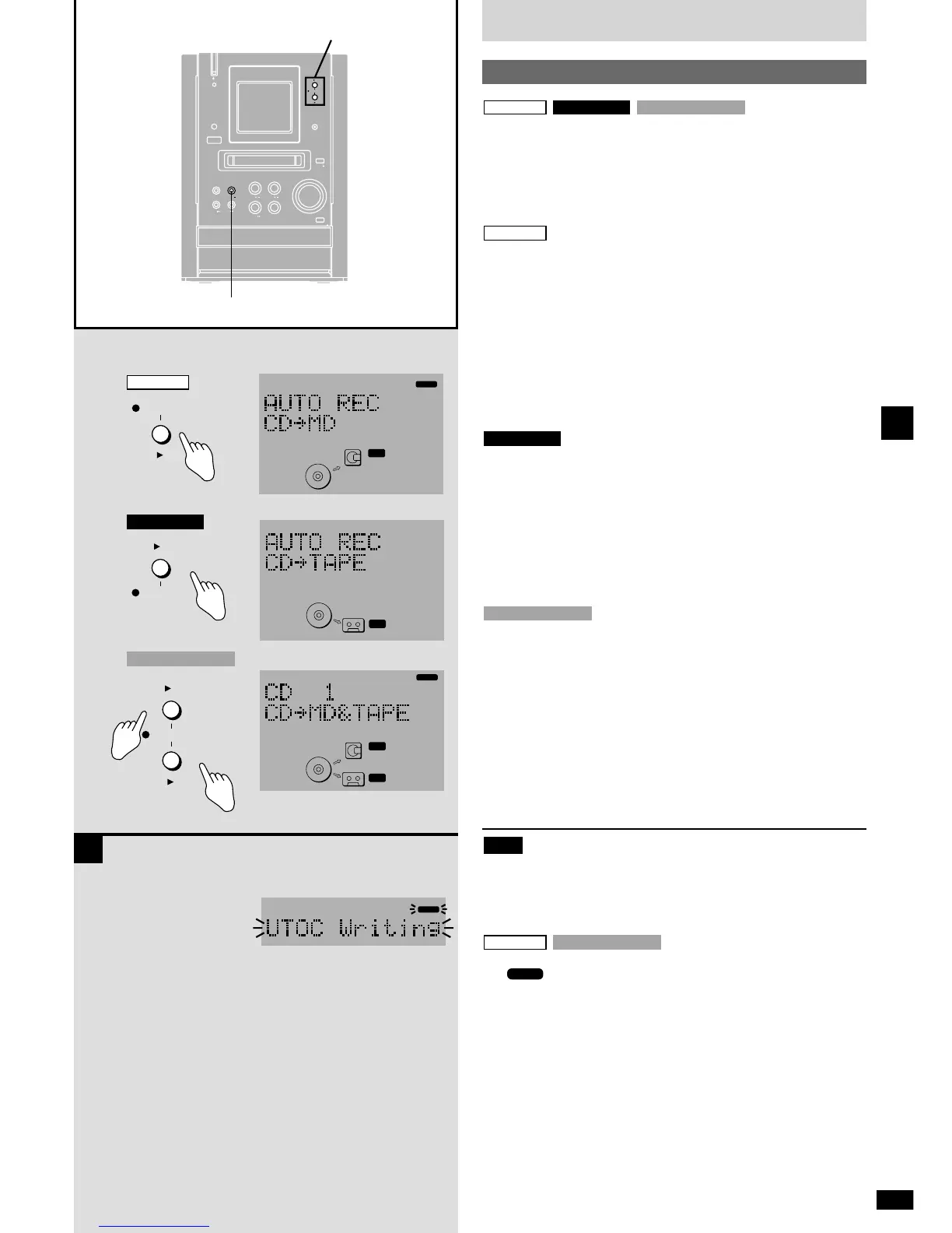 Press and hold [* AUTO REC CD q MD] until “AUTO REC”
