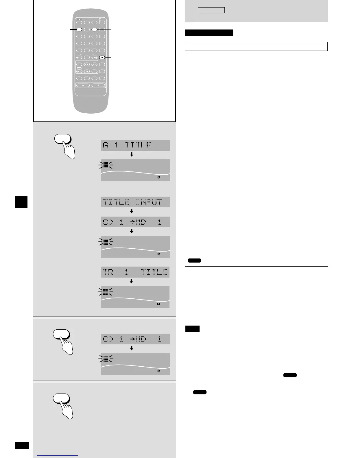 ¡ When 1-song recording finishes, titling is also stopped.