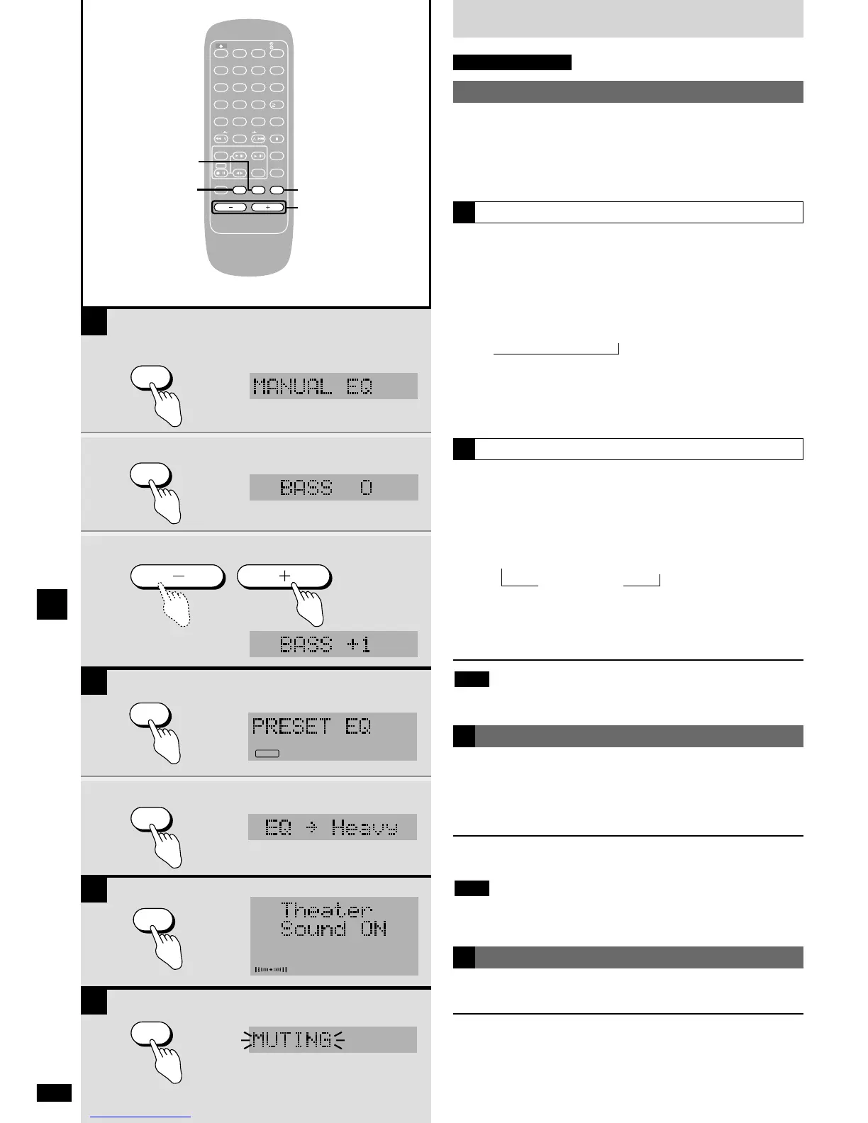 You can select four sound qualities with PRESET EQ: Heavy, Clear,