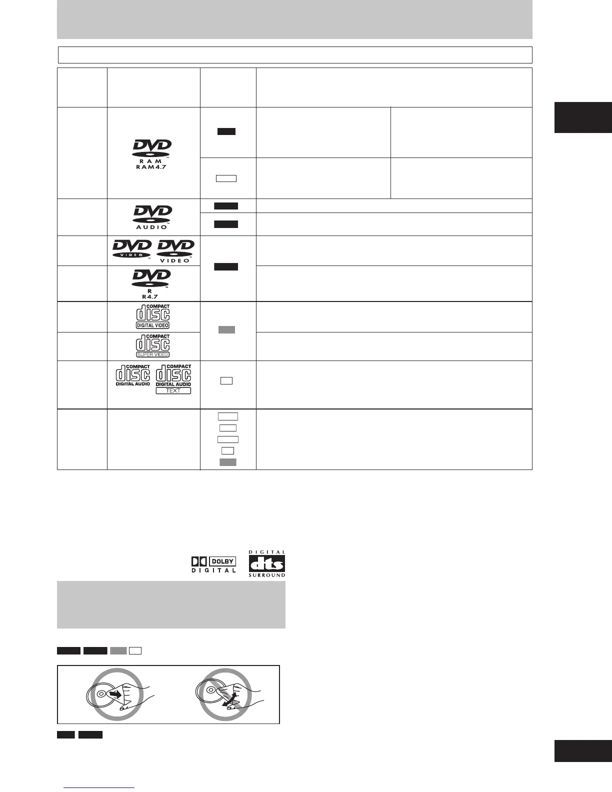 It may not be possible to play the above discs in all cases due to the type of disc or condition of the recording.