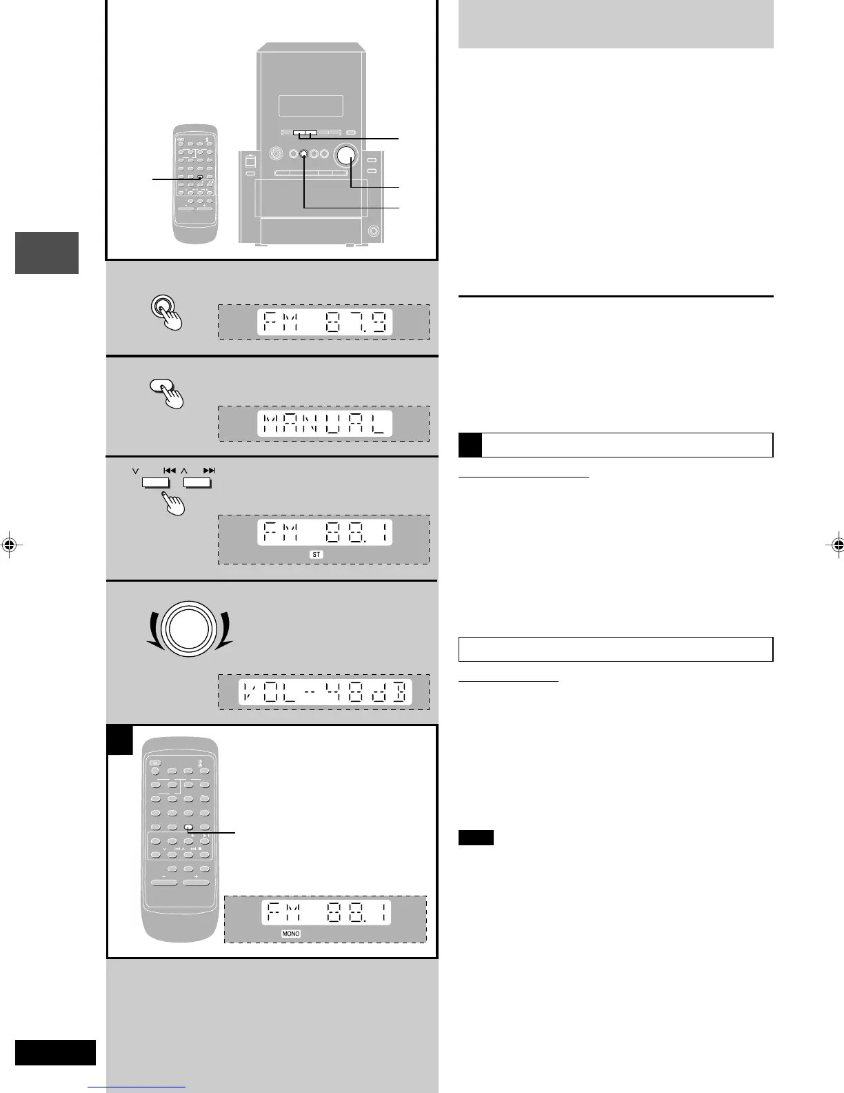 1 Press [TUNER/BAND] to select “FM” or “AM”.