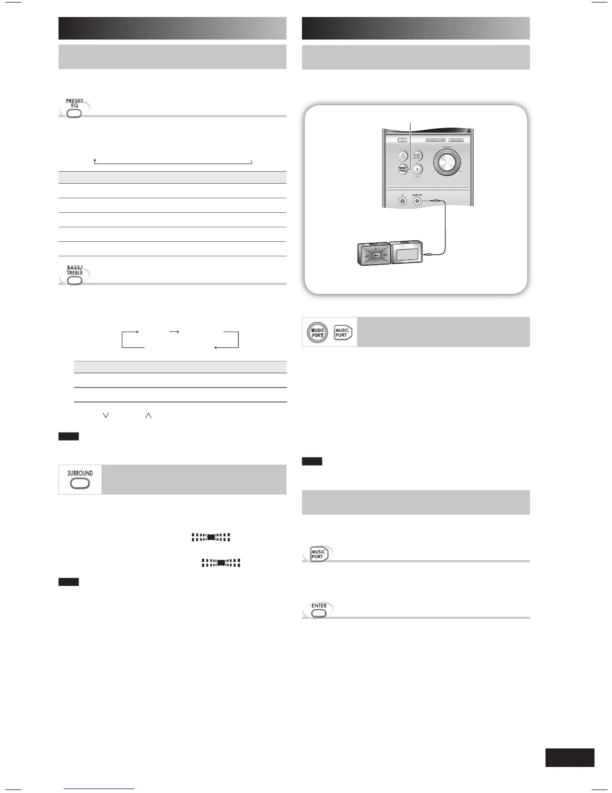 Press [BASS/TREBLE] repeatedly to select your