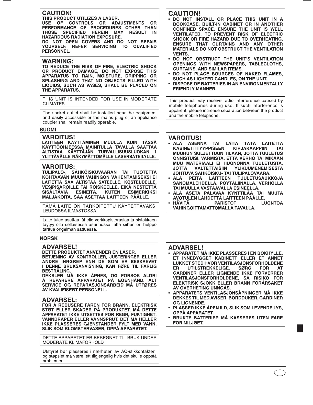 • APPARATET MÅ IKKE PLASSERES I EN BOKHYLLE,