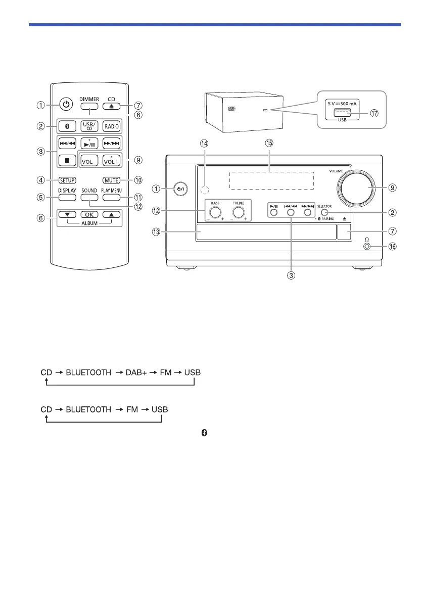 Press to switch the unit from on to standby mode or vice versa. In standby mode, the unit is still
